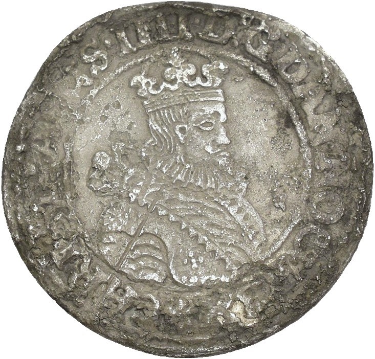 1/8 speciedaler 1628 S.30 2,93 g. Korrodert, ripe advers / Corroded, scratch obverse.
