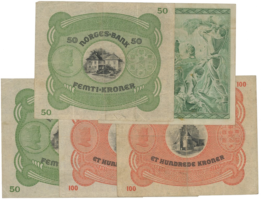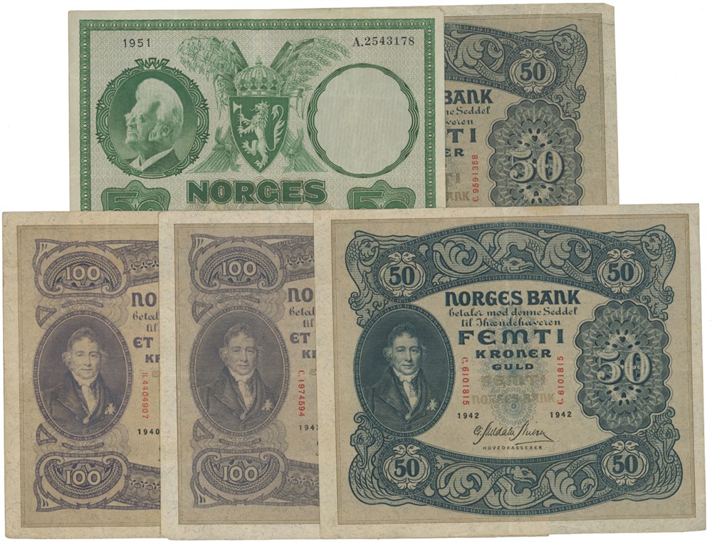 - Lott 50- & 100-kroner 1940-1951 (5) (15171849)