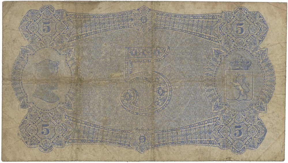 5 kroner 1877. 1467953. Signert Kamstrup. Litt skitten/slightly dirty.
