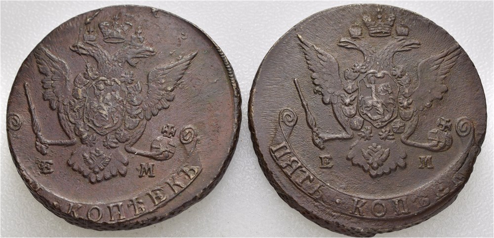 5 kopek 1769 (48,38 g) & 1771 (46,62 g) EM.