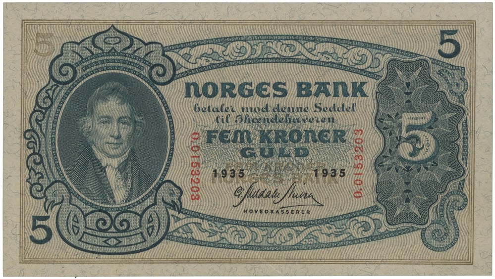 - 5 kroner 1935. O.0153203. (15191353)