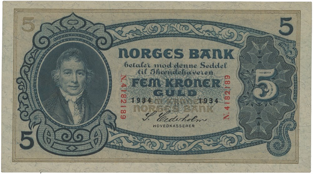 - 5 kroner 1934. N.4182189. (15191383)