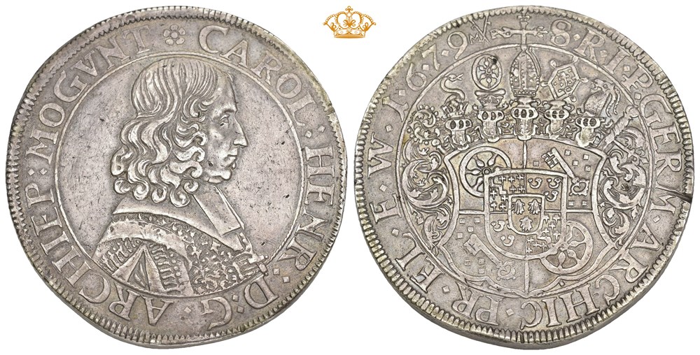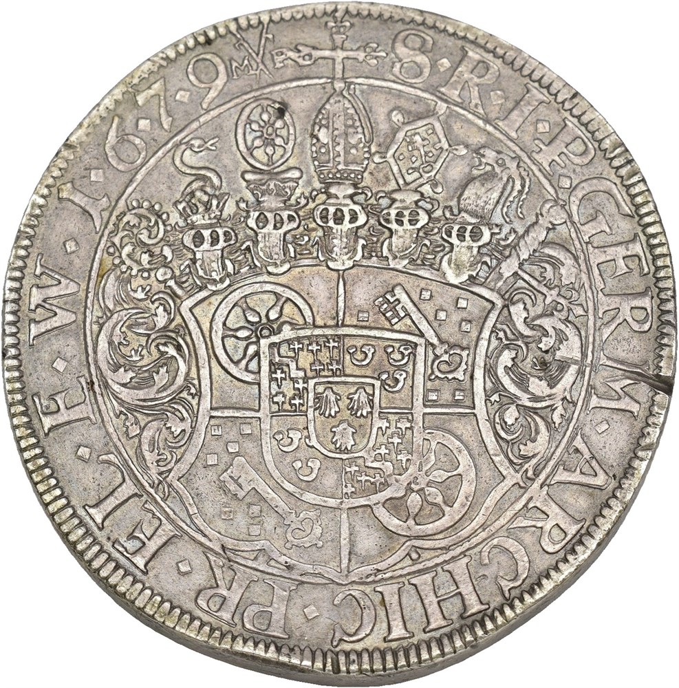 Taler 1679, Mainz. 57.11 g. Edge nick.