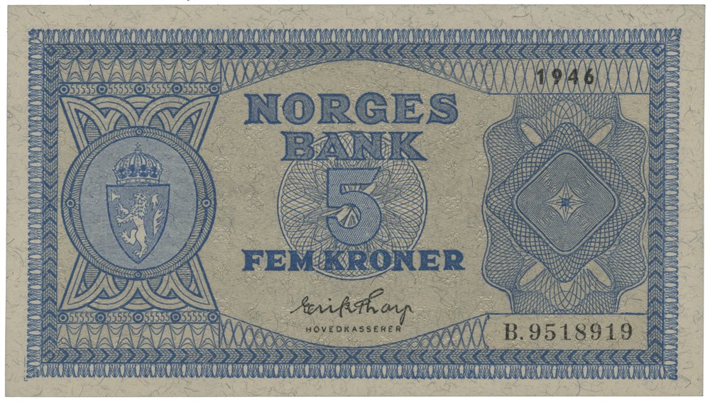 - 5 kroner 1946. B.9518919. (15206990)