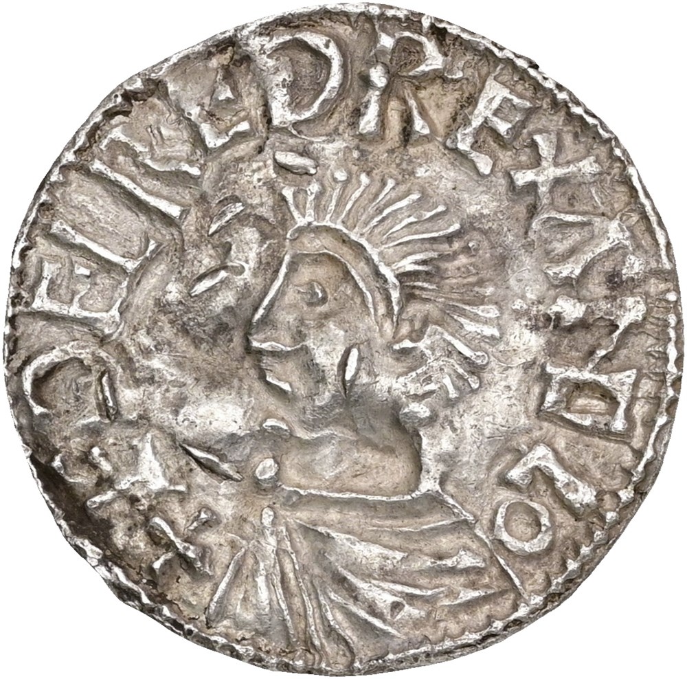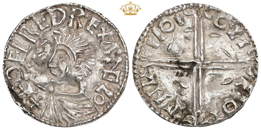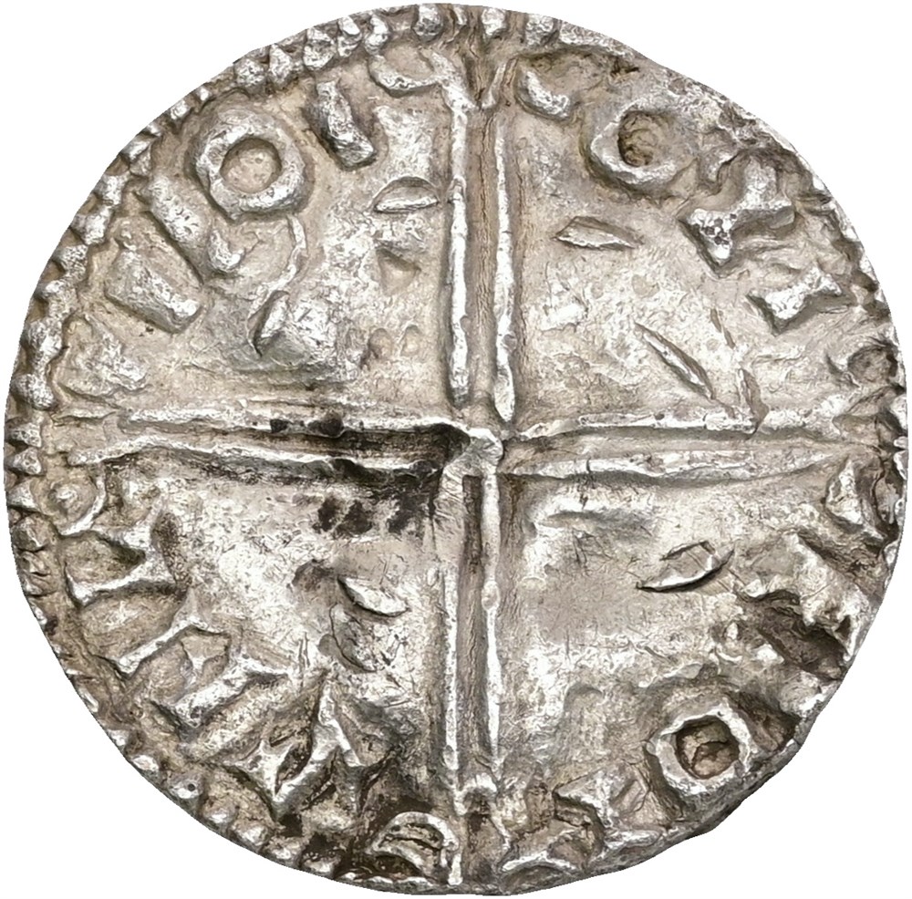 Penning, Lund(?). 2,13 g. Imitasjon av Æthelred IIs Long Cross-type (ca. 997-1003). Forsideinnskrift: +ÆÐELRED REX ANGLO.