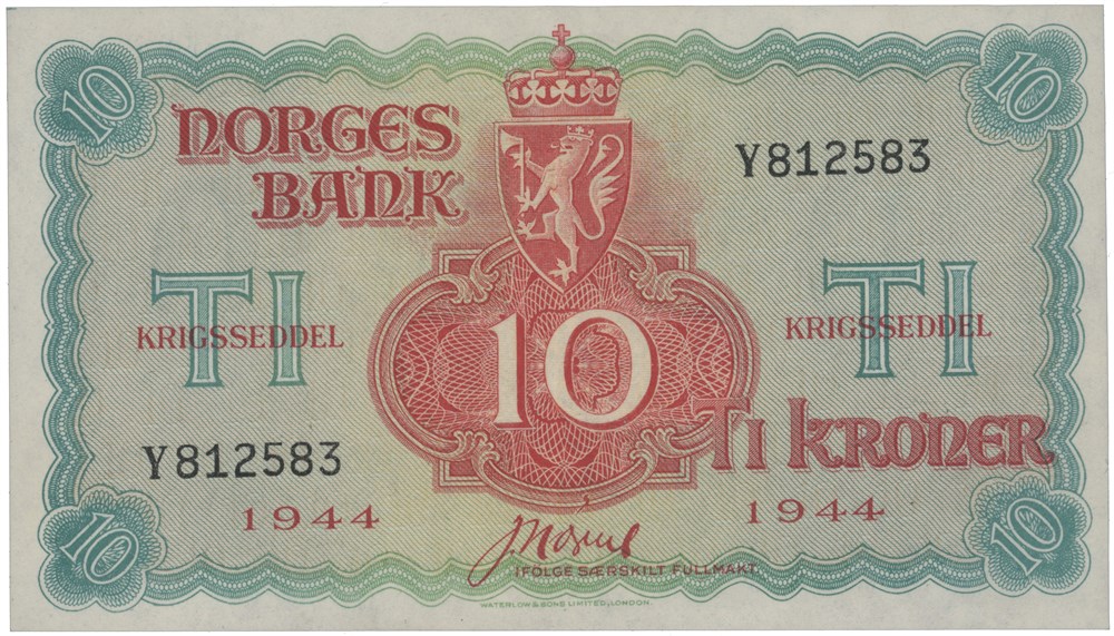 10 kroner 1944. Y812583.