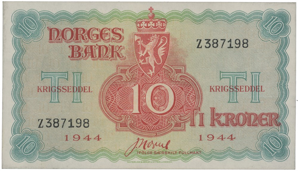 10 kroner 1944. Z387198.