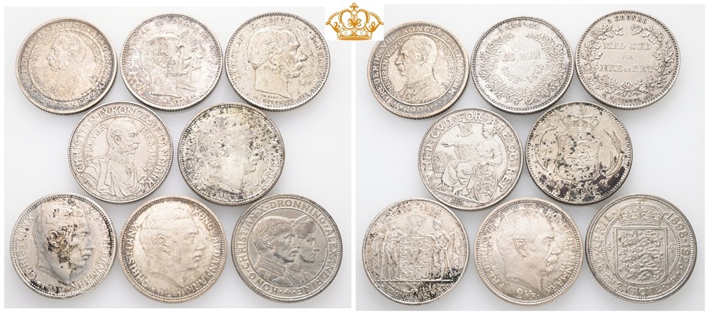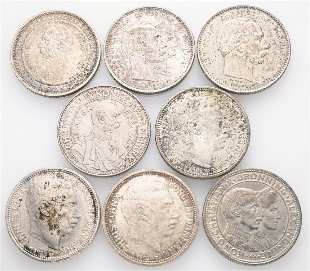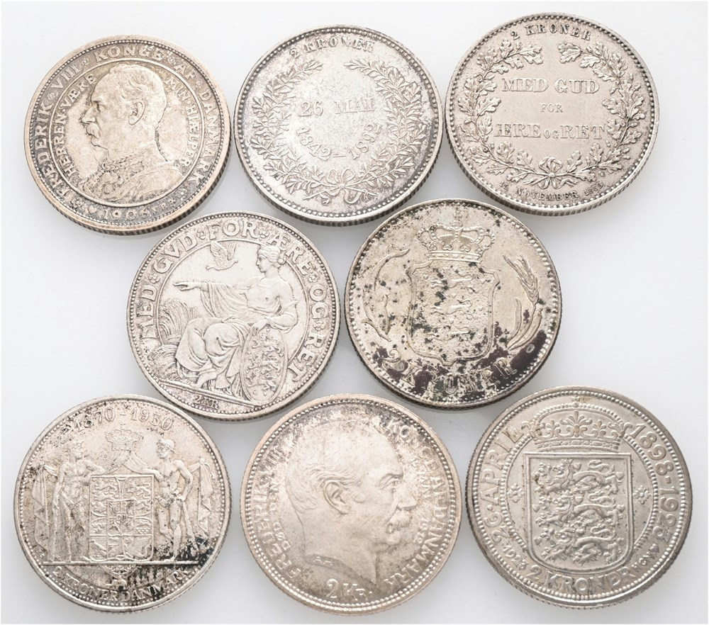 Lott 8 stk. 2 kroner 1888, 1892, 1903, 1906, 1912, 1916, 1923 og 1930