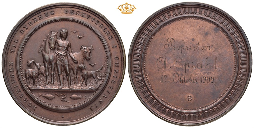 Foreningen til Dyrenes beskyttelse i Christiania 1886. Bronse. 50 mm; 52,55 g
