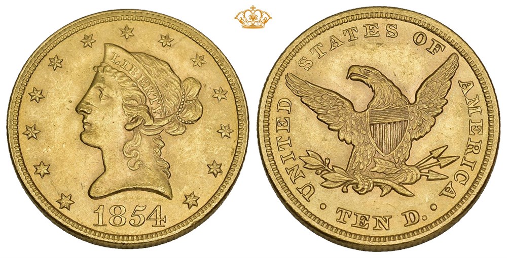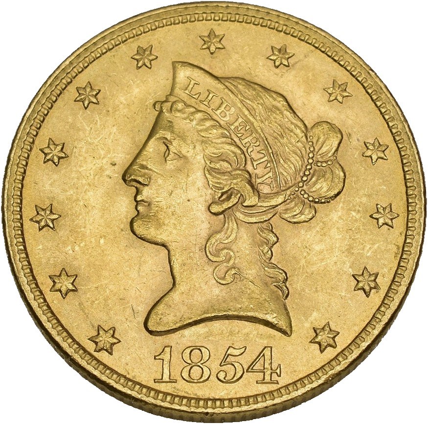 10 Dollars 1854, Philadelphia. 16.77 g.