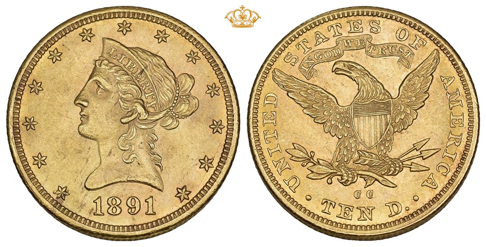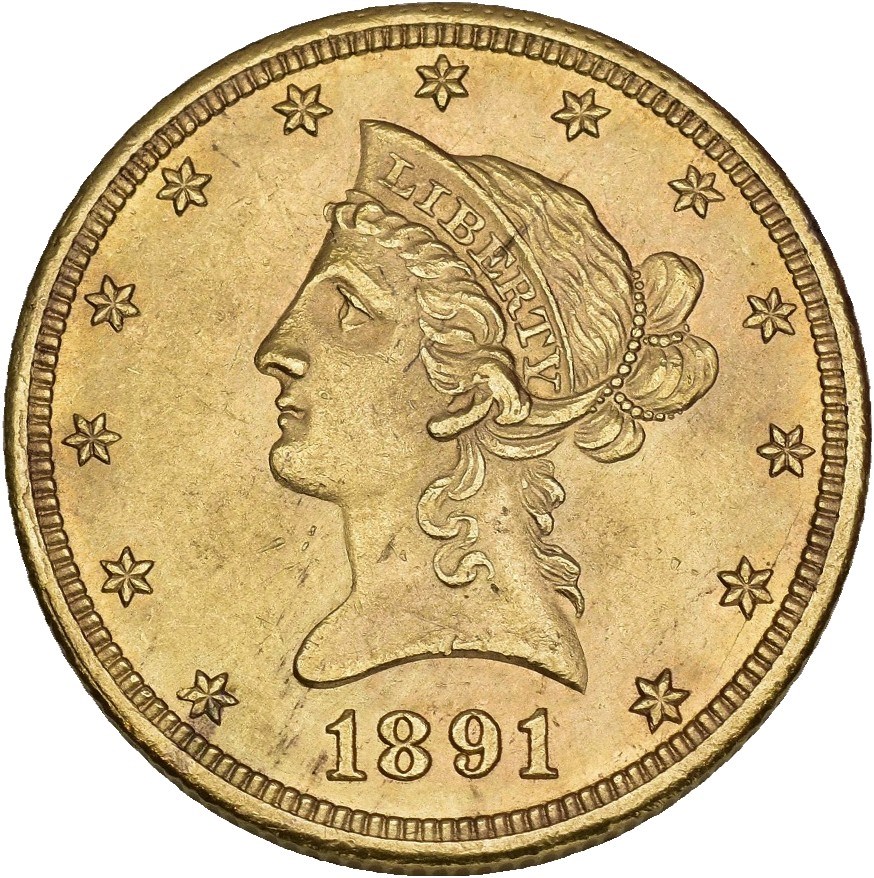 10 Dollars 1891 CC, Carson City. 16.78 g.