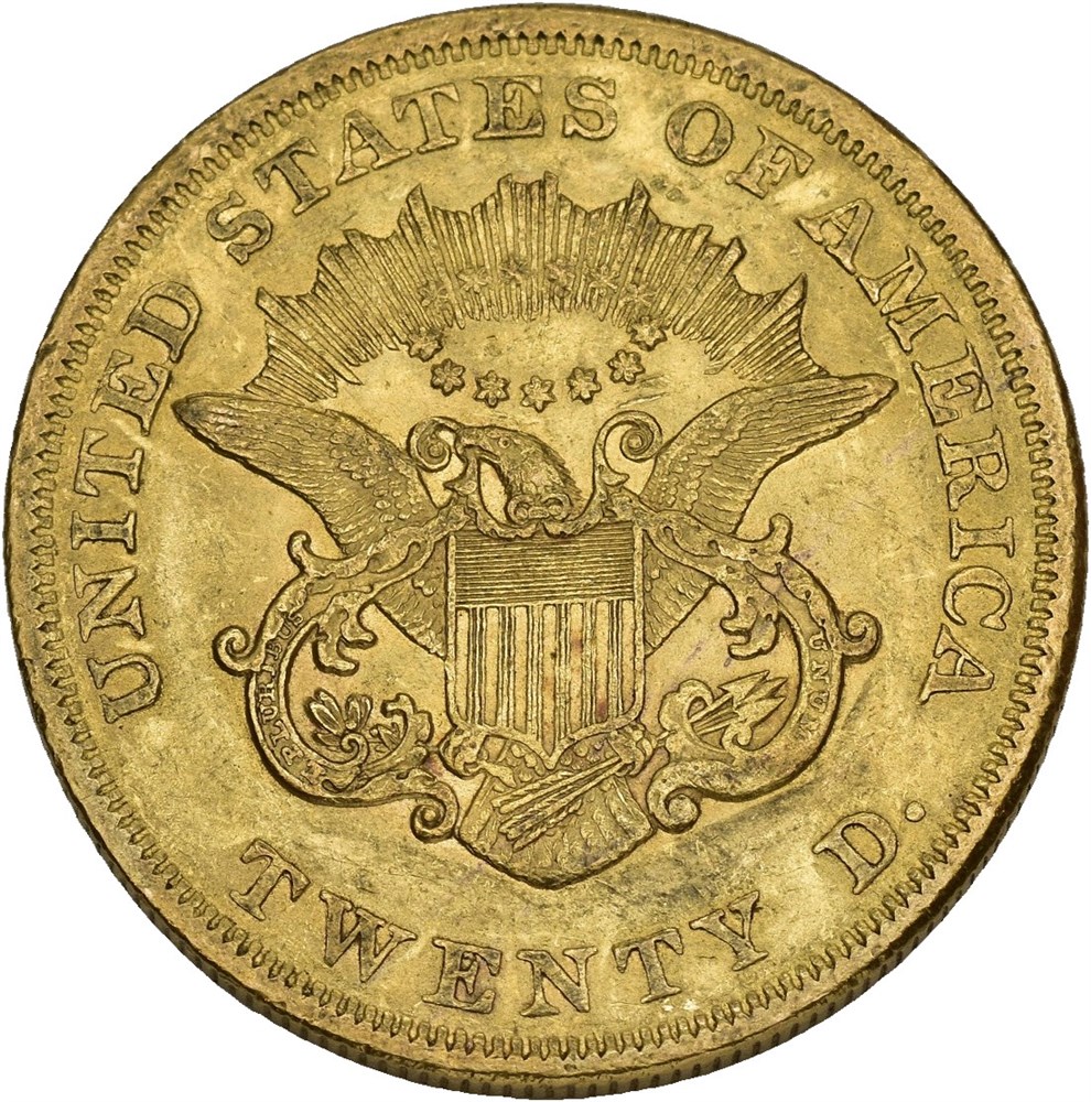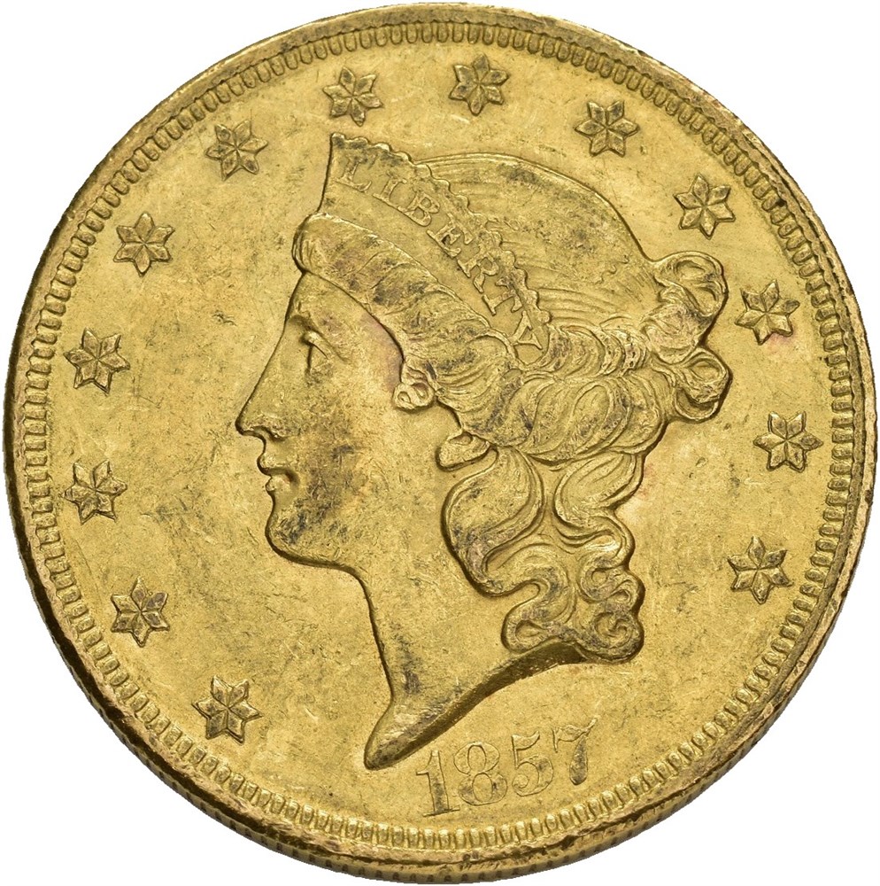 20 Dollars 1857, Philadelphia. 33.47 g.
