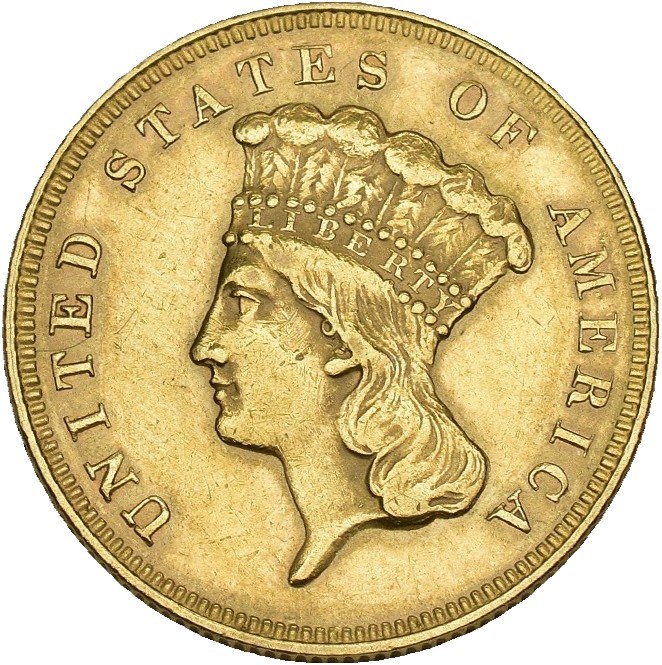 3 Dollars 1878, Philadelphia. 5.02 g. Cleaned.