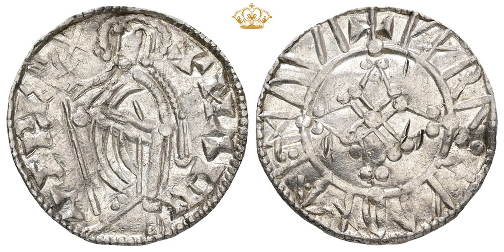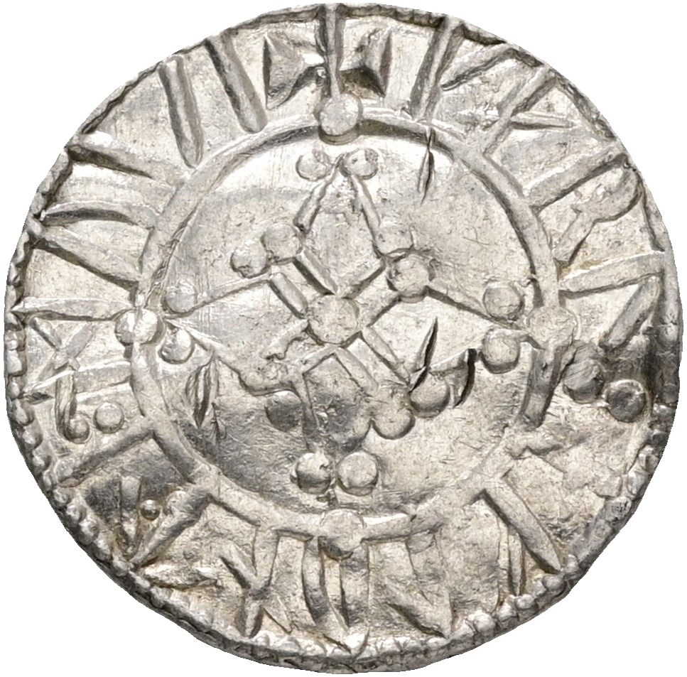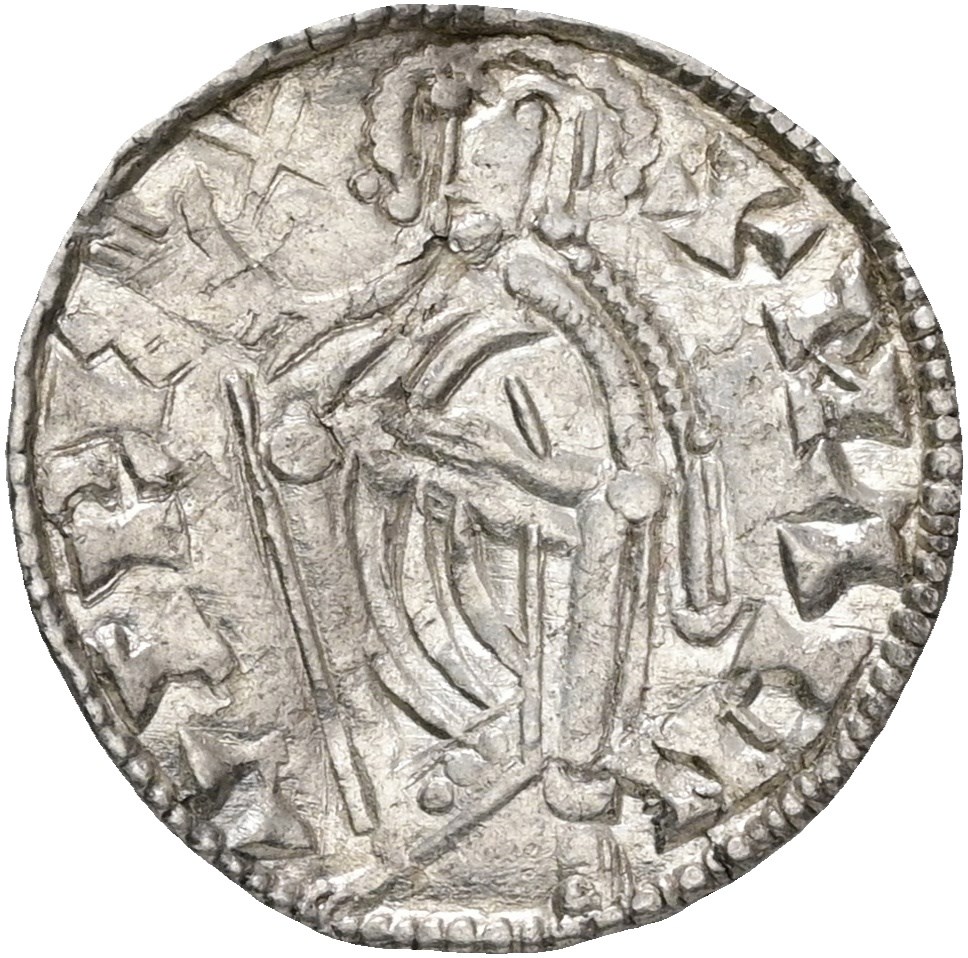 Penning, Lund. 1,00 g. Myntmester Karl. Buklet. Hakk. Pent eksemplar av sjelden Rune-mynt.