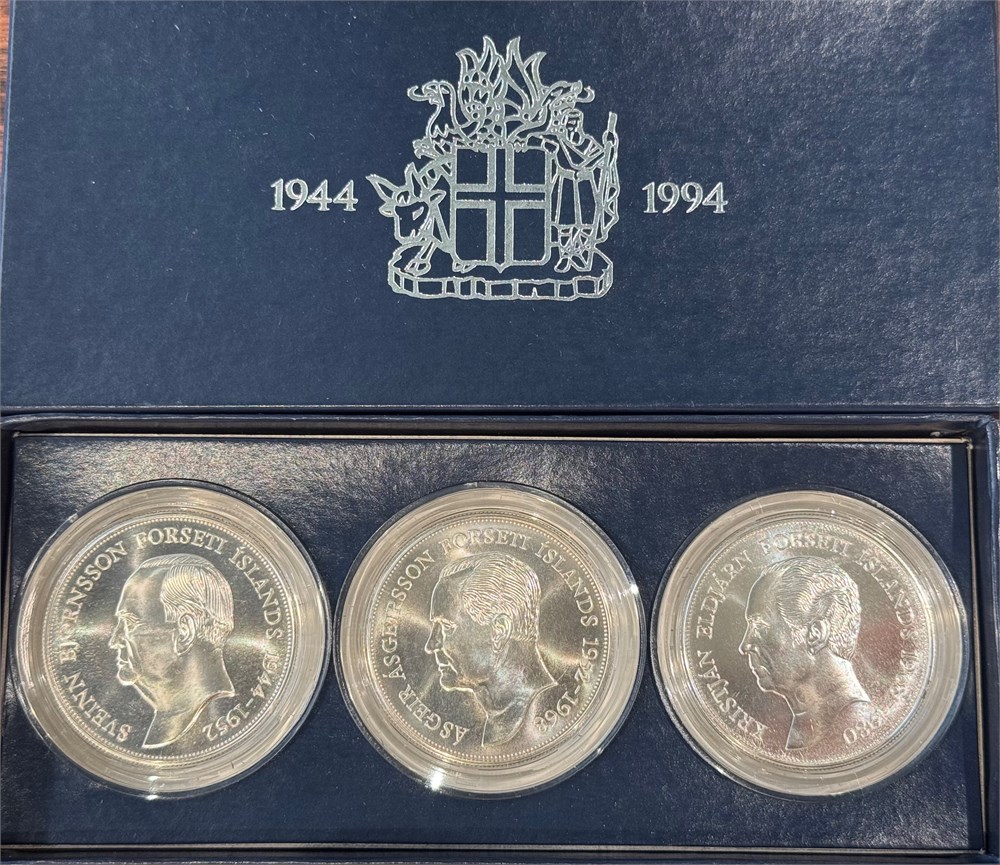 Island 1000 kronur 1994 50th anniversary of the republic sett 3 stk. I original eske/in original box