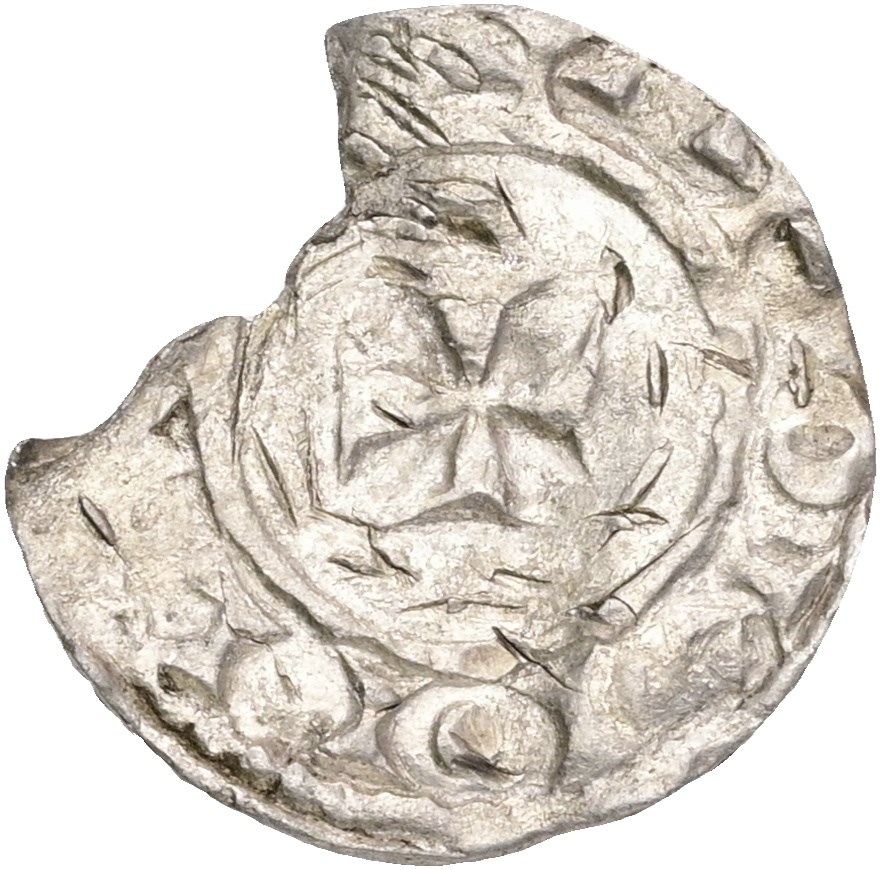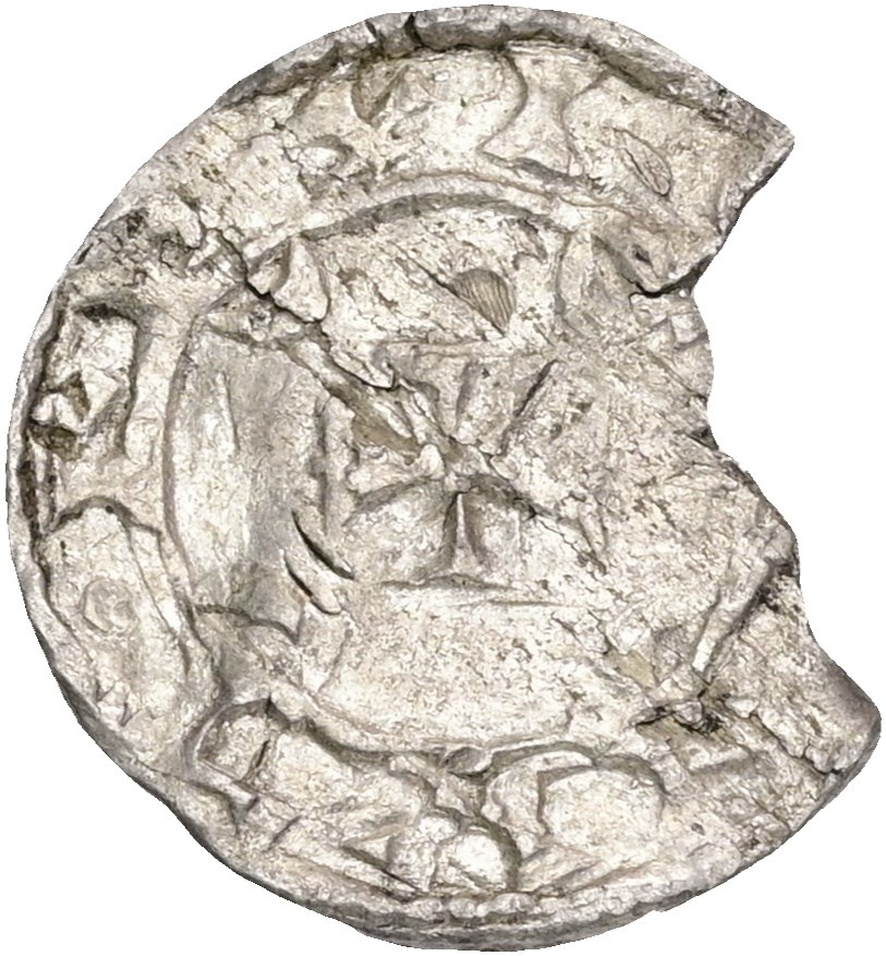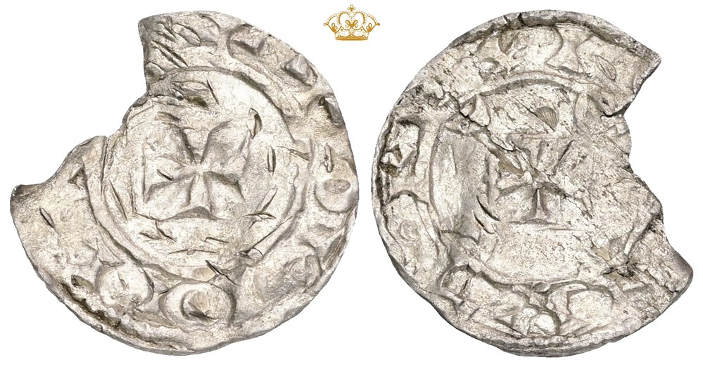 Penning, Lund. 0,81 g. Hakk, større skade.