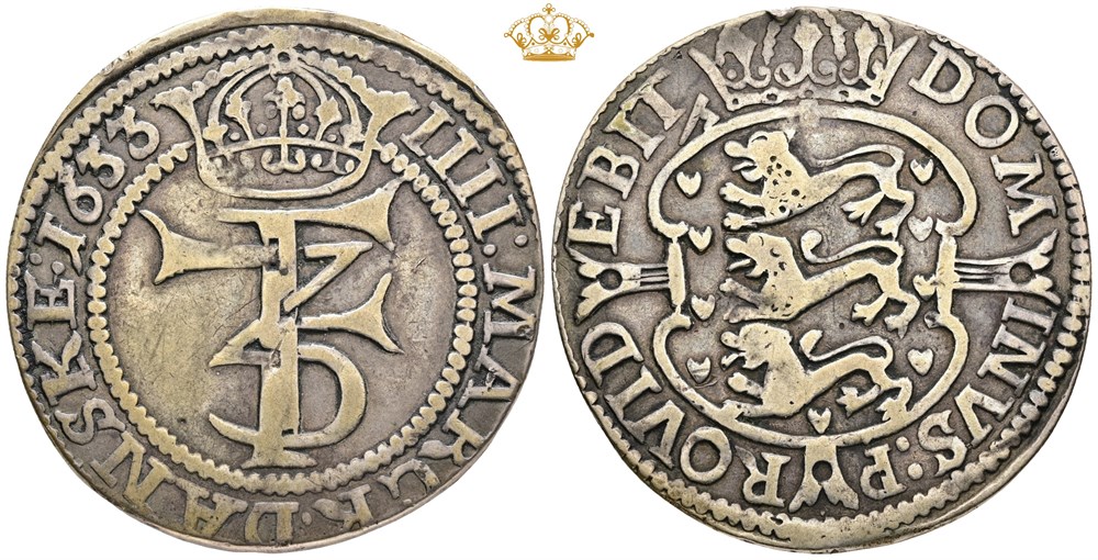 4 mark / krone 1633 (1653). 21,50 g. Mysteriekrone