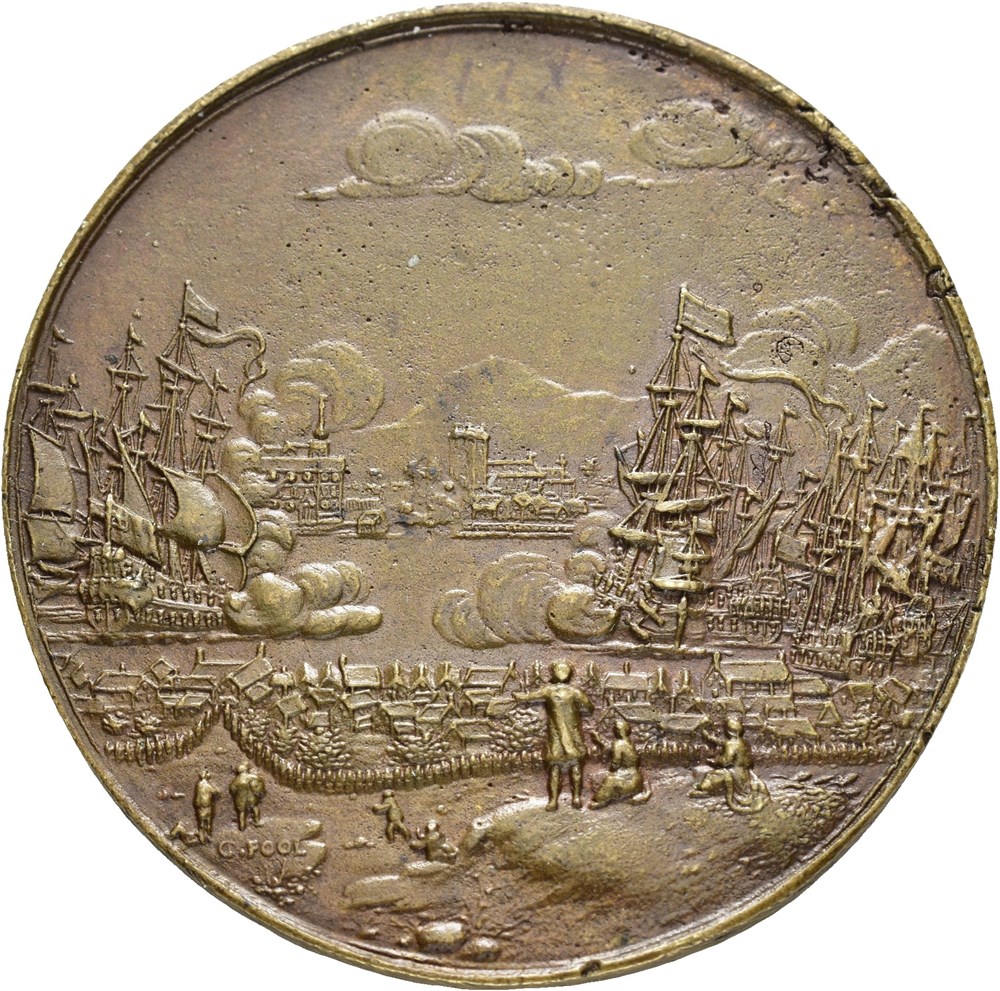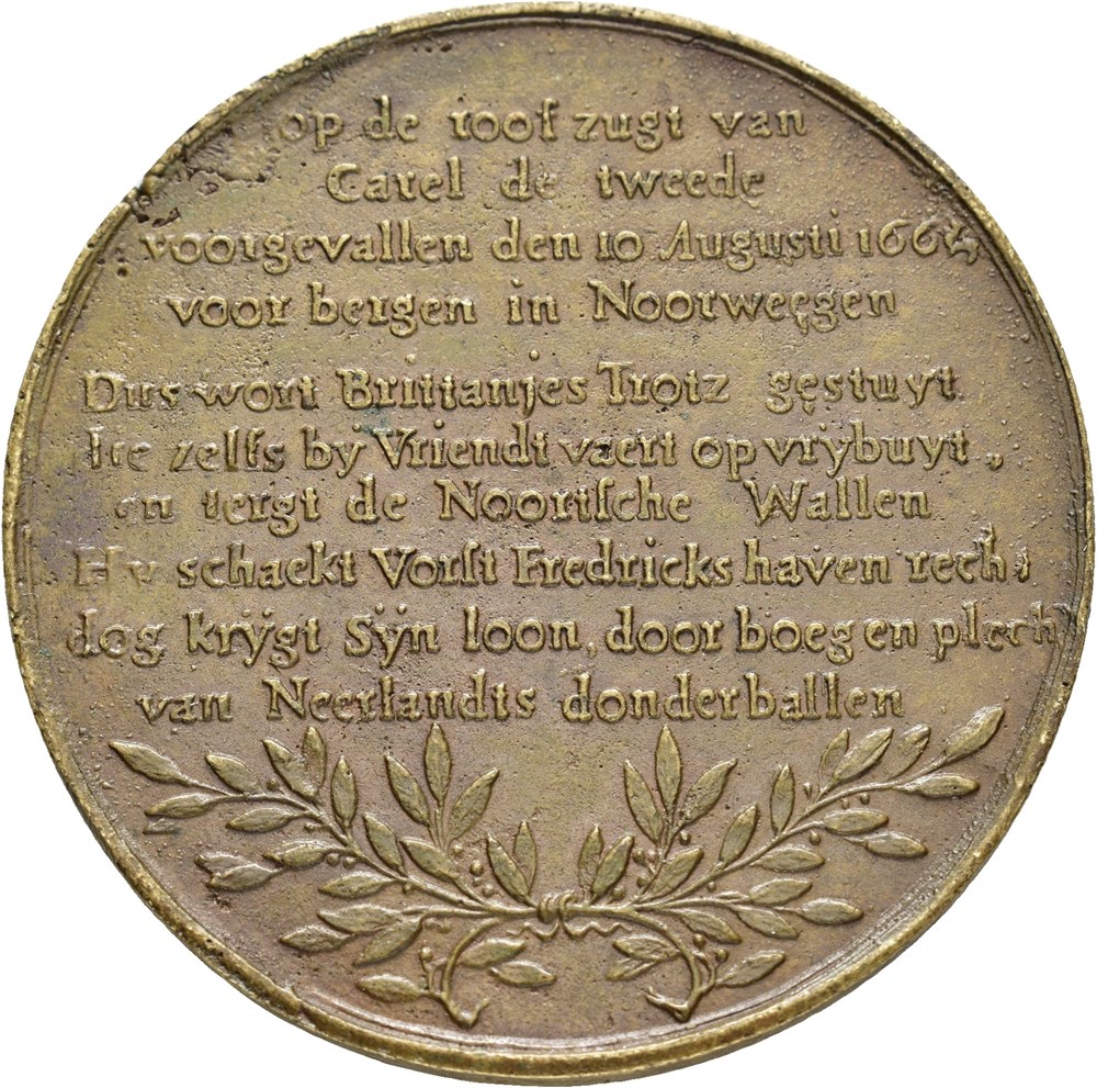 The battle of Bergens red 1665. G. Pool. Bronze 53 mm; 40,32 g. Ten lines on reverse.