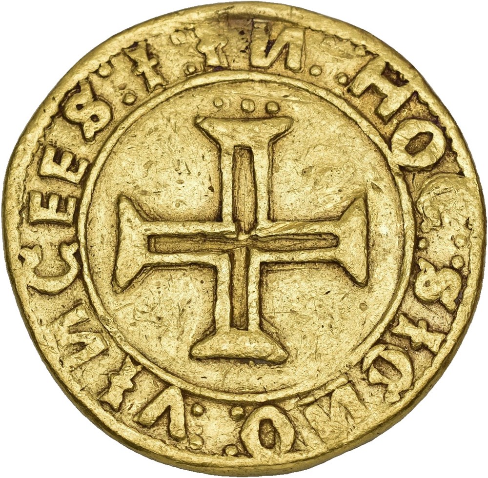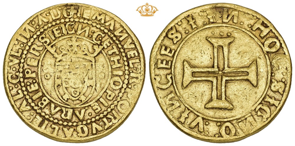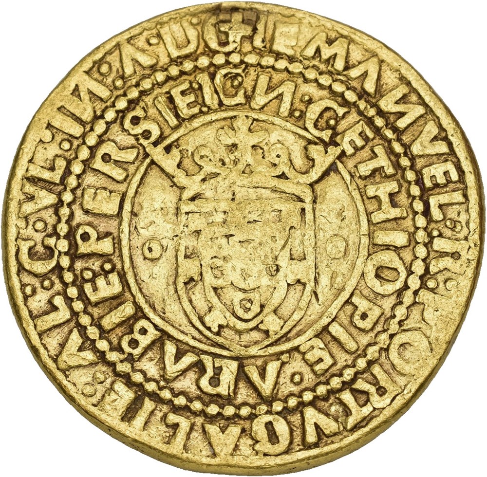 10 Cruzados (Portugues/Portugaløser) ND, Lisbon. 34.67 g. Small repair on both sides at 12 o'clock. Very rare.