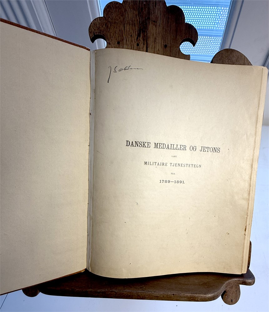 Danske Medailler og Jetons samt Militaire Tjenestetegn 1789-1881, med fortsettelse inntil 1893. Med tavler. Litt slitasje.