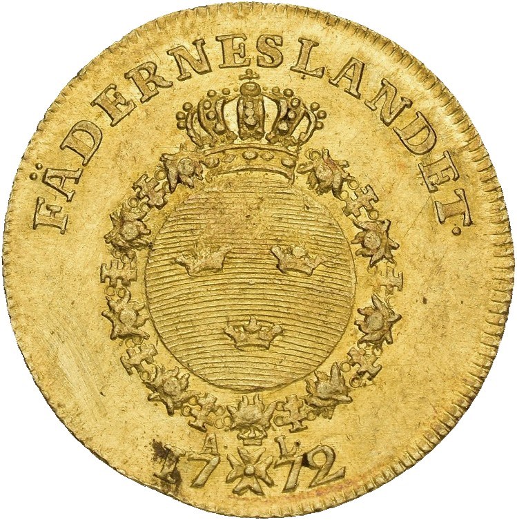 Dukat 1772, Stockholm. 3,48 g. Riper.
