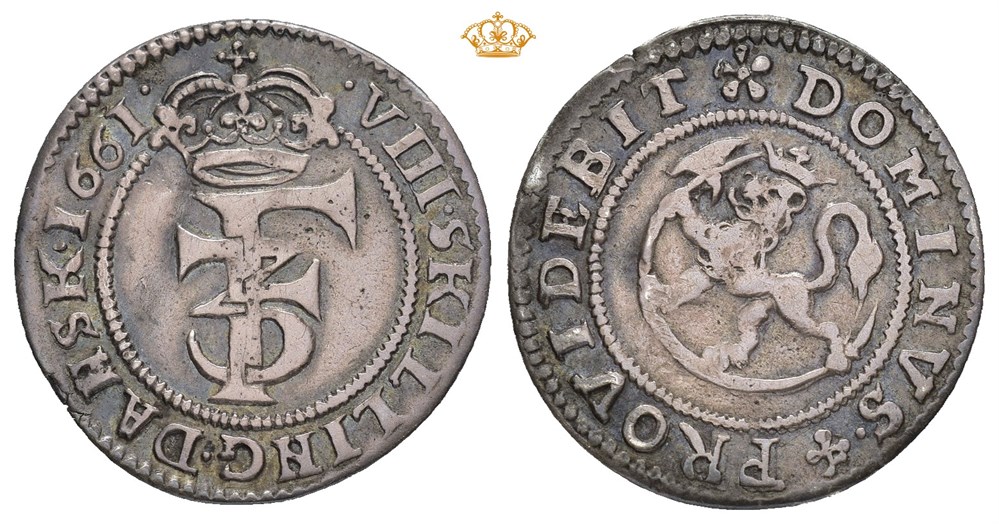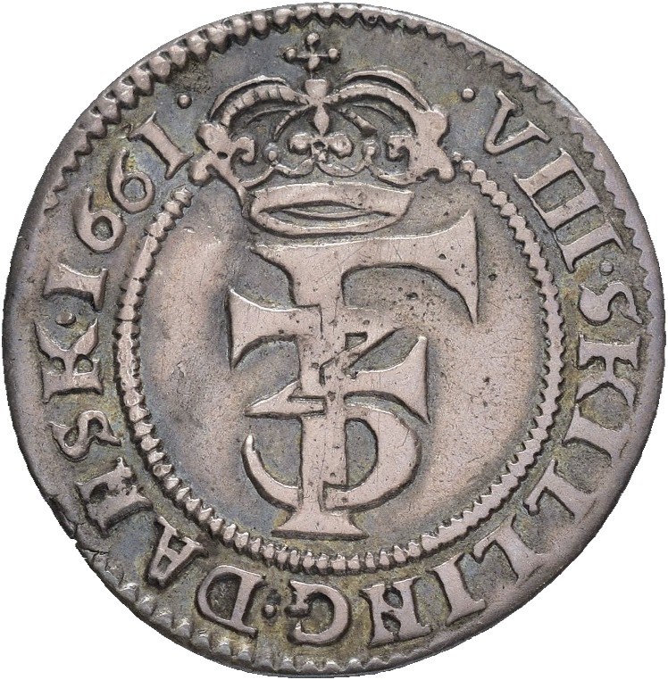 8 skilling 1661. R. S.53. Lett buklet/slightly creased