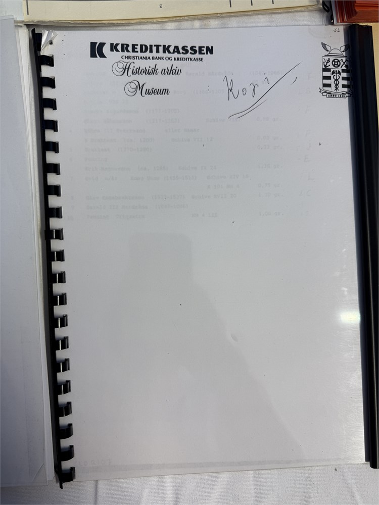 Fortegnelse over Kreditkassens myntsamling. Kopi av bankens egen oppstilling.