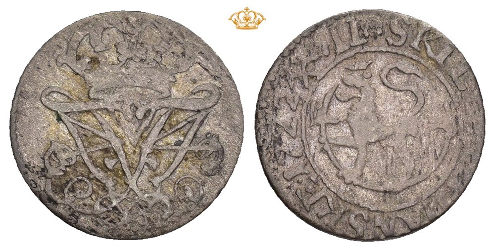 2 skilling 1722. R. S.3 Det sjeldneste årstallet av Frederik IVs 2 skillinger.