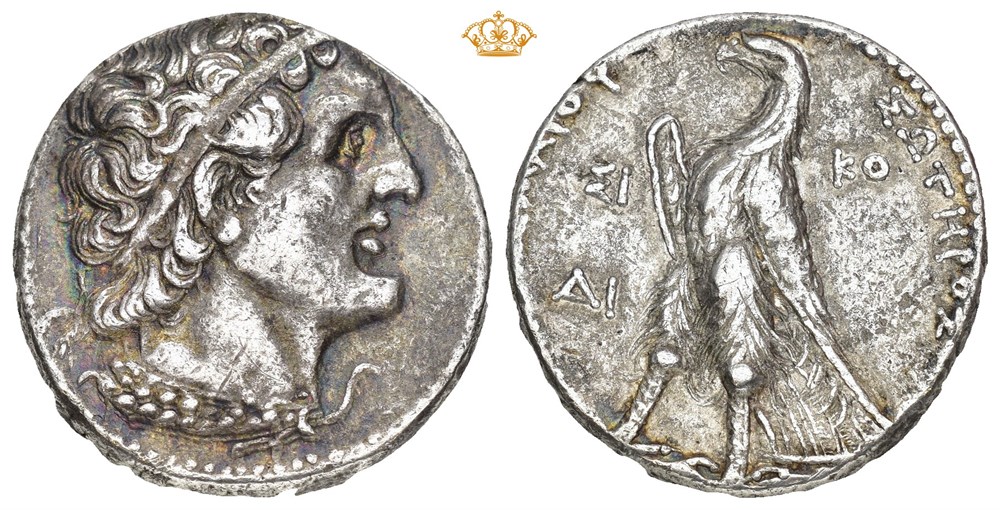 PTOLEMAIC KINGS of EGYPT. Ptolemy II Philadelphos 285-246 BC. AR Tetradrachm (26 mm; 14.15 g). Sidon mint, dated RY 29 (= 257/256 BC). Obverse: Diademed head of Ptolemy I facing right, wearing aegis around neck. Reverse: [ΠΤΟΛEΜΑ]ΙOΥ ΣΩΤΗΡΟΣ, Eagle standing left on thunderbolt, wings closed; ΣΙ above monogram AI in left field; date KΘ in right field. Toned.