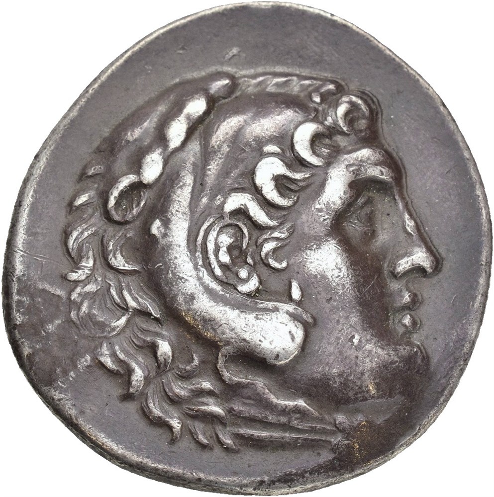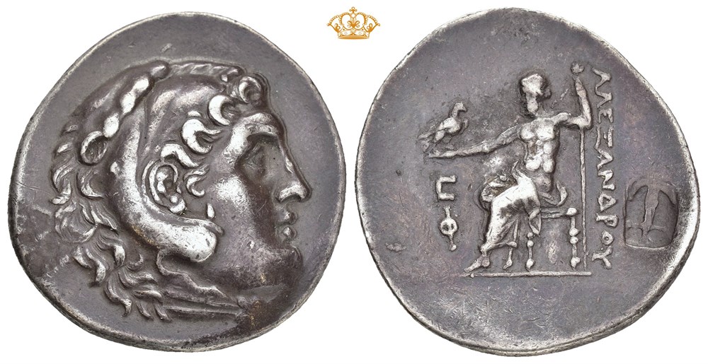 LYCIA, Phaselis. AR Tetradrachm (32 mm; 16.71 g). Dated CY 6 (= 213/2 BC). In the name and types of Alexander III of Macedon. Obverse: Head of Heracles right, wearing a lion-skin headdress with paws tied in front of the neck. Reverse: ΑΛΕΞΑΝΔΡΟΥ, Zeus seated left on backless throne, right leg drawn back, both feet resting on the ground line; eagle in extended right hand, scepter held vertically in left; C over Φ (date) in left field; Seleukid anchor countermark within shallow incuse in lower right field. Deep old cabinet toning.