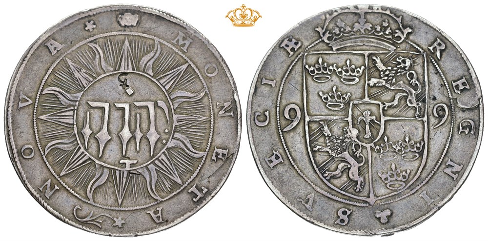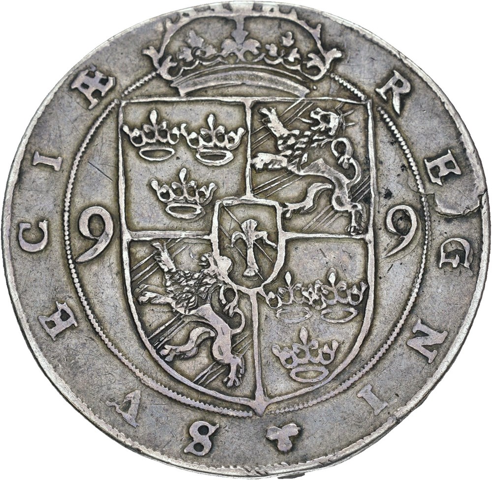 Daler 1599, Stockholm. 29,23 g. Innslått tegn advers, blankettfeil.