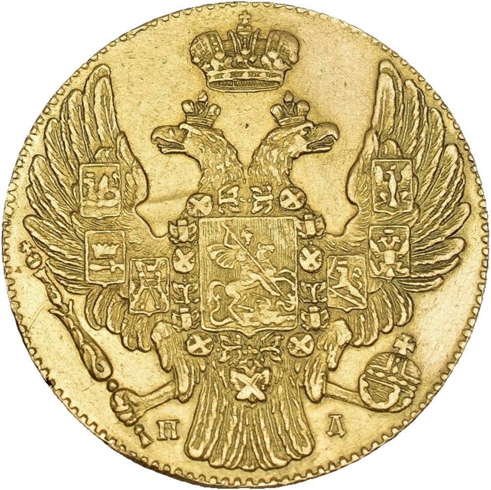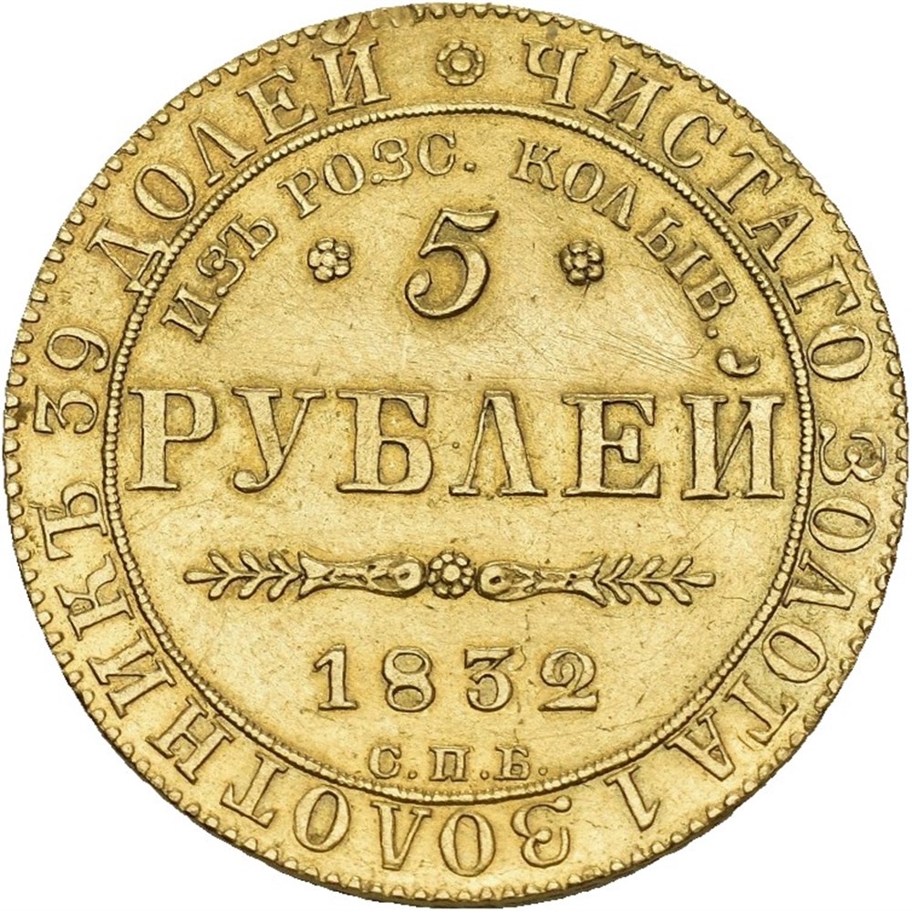 5 Roubles 1832, St. Petersburg. 6.53 g. Lightly rubbed in fields. Struck to commemorate the commencement of coinage using gold mined from the Kolyvano-Voskresensky gold fields. Extremely rare.