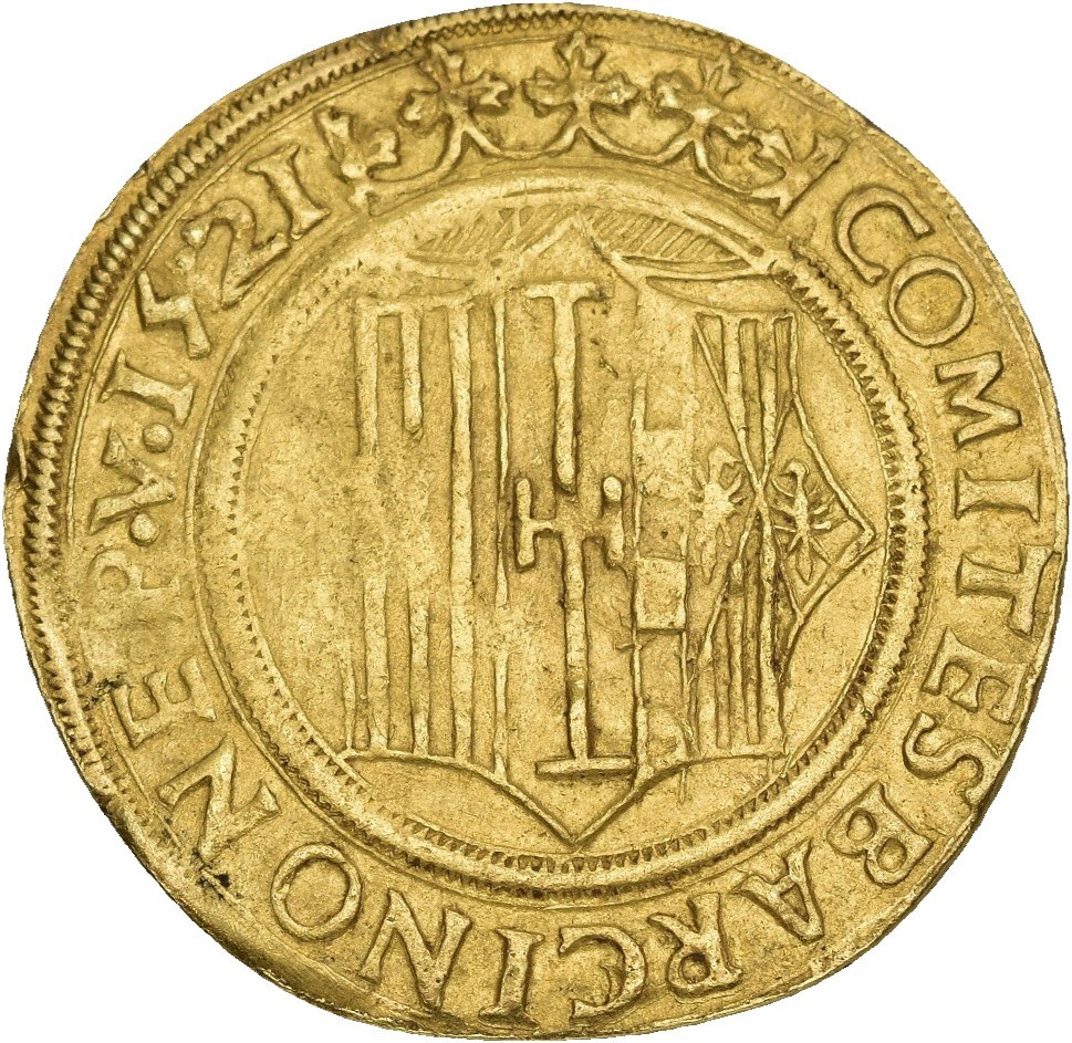 2 Principats 1521, Barcelona. 6,82 g. Extremely rare.