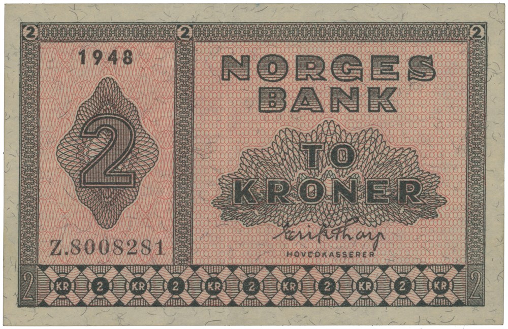 2 kroner 1948. Z.8008281. Erstatningsseddel/replacement note.