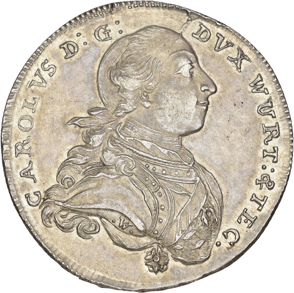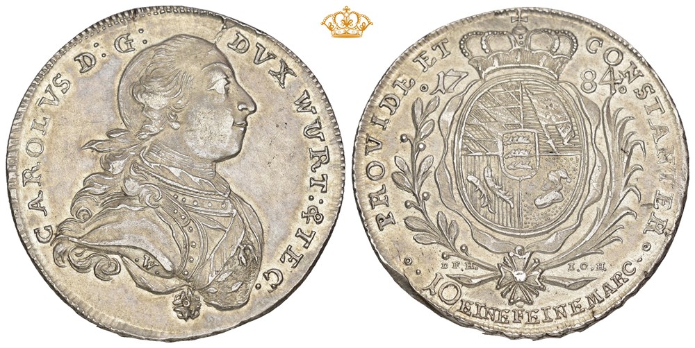 Konventionstaler 1784, Stuttgart. 27.98 g. Attractive, uncommon high grade specimen.