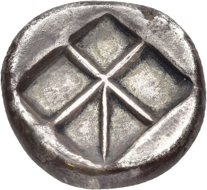 ISLANDS off ATTICA, Aegina. AR Stater (21 mm; 12.11 g). Struck circa 370 BC. Obverse: Land tortoise with segmented shell. Reverse: Incuse square with thin skew pattern. Some die rust on obverse. Deeply toned.
