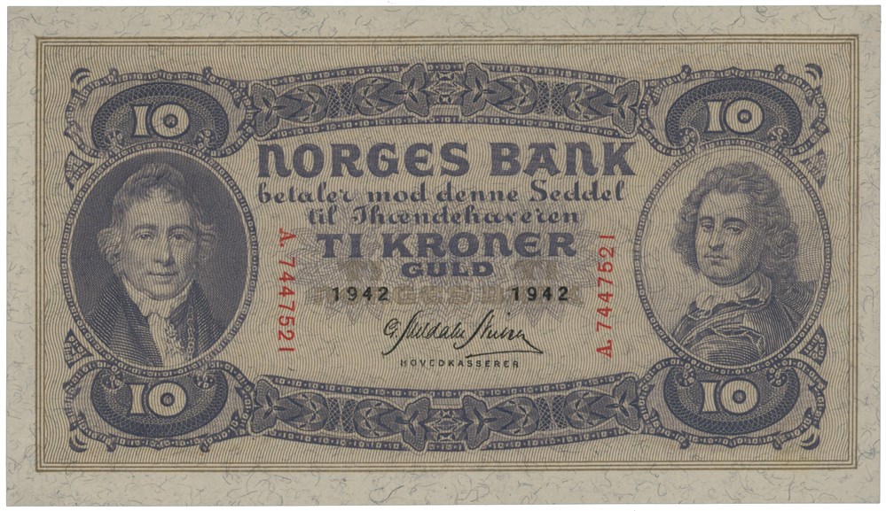10 kroner 1942. A.7447521.