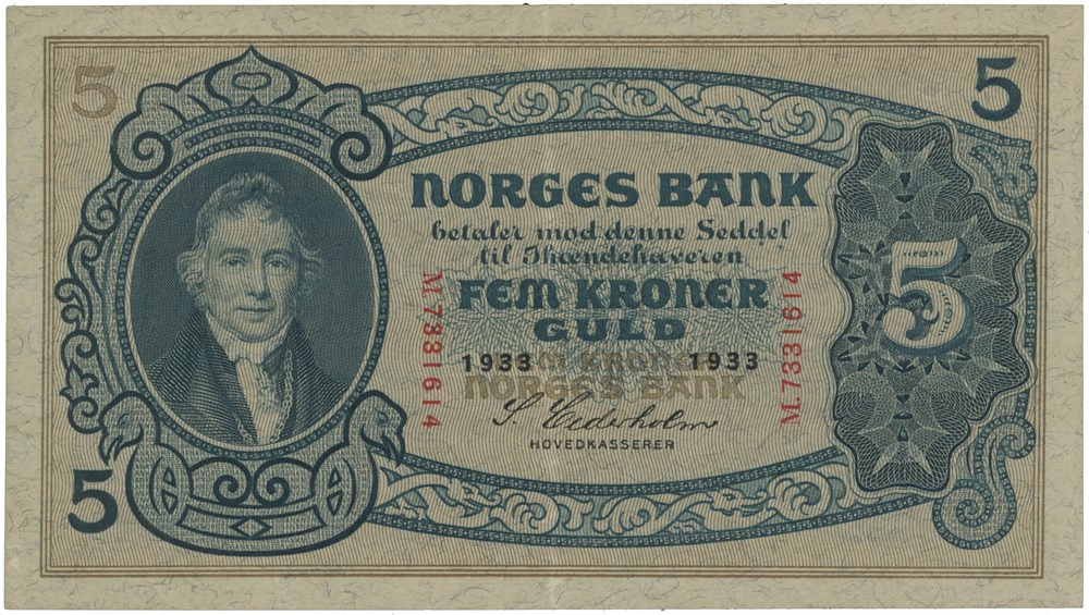 5 kroner 1933. M.7331614.