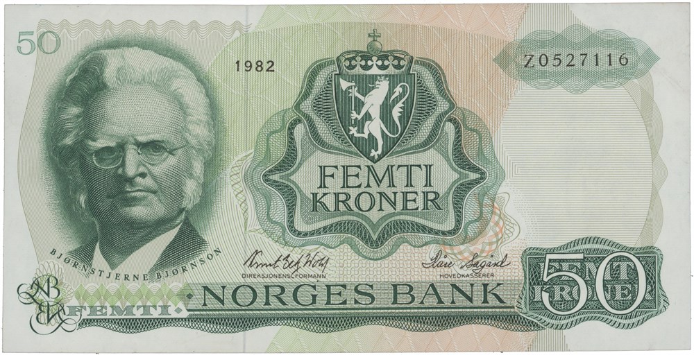 50 kroner 1982. Z0527116. Erstatningsseddel/replacement note. Presset/ironed.