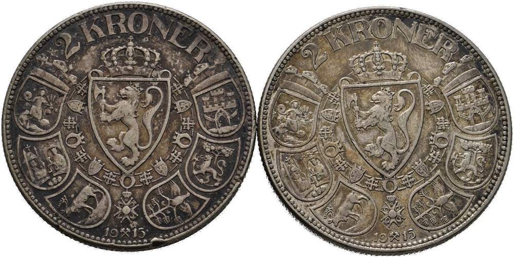 - 2 kroner 1915, 2 stk med anmerkninger (15560858)