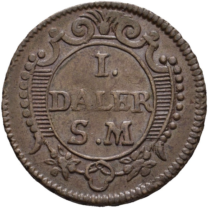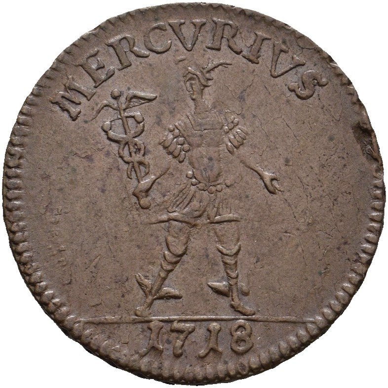 Daler SM 1718. Mercvrivs Stockholm. 4,63 g. Nødmynt.