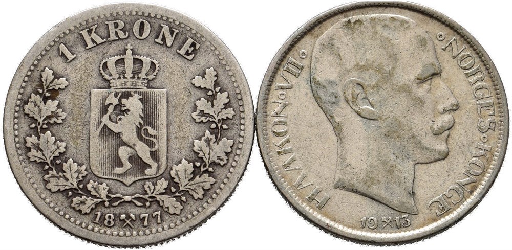 1 krone 1877 og 1913