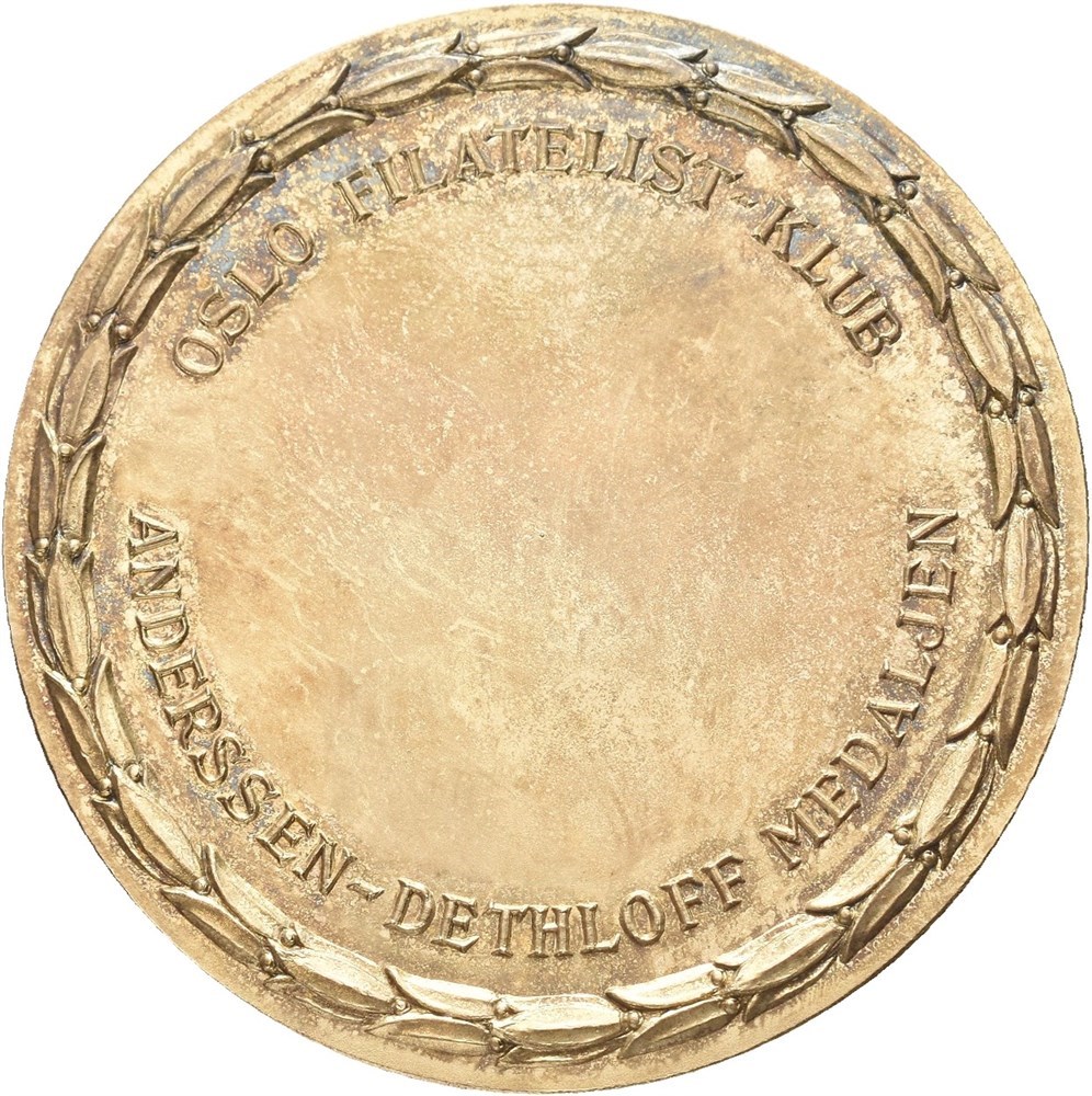 - Andersen-Dethloff medaljen. Oslo Filatelistklubb. Rui. Forgylt. 50 mm (15585028)