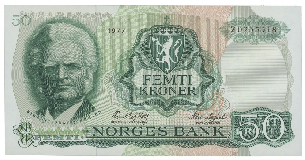 50 kroner 1977. Z0235318. Erstatningsseddel.