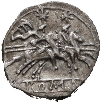 Anonymous series. 211-208 BC. AR Sestertius (0.96 g). Rome mint. Helmeted head of Roma right, IIS (mark of value) behind / The Dioscuri on horseback riding right, stars above head, ROMA within linear frame below. Minor roughness in fields. Lightly toned.