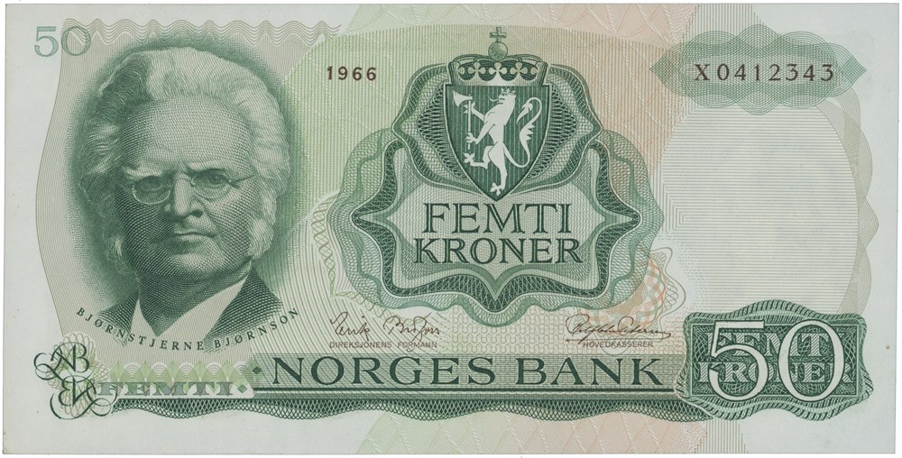 50 kroner 1966. X0412343. Erstatningsseddel/replacement note.